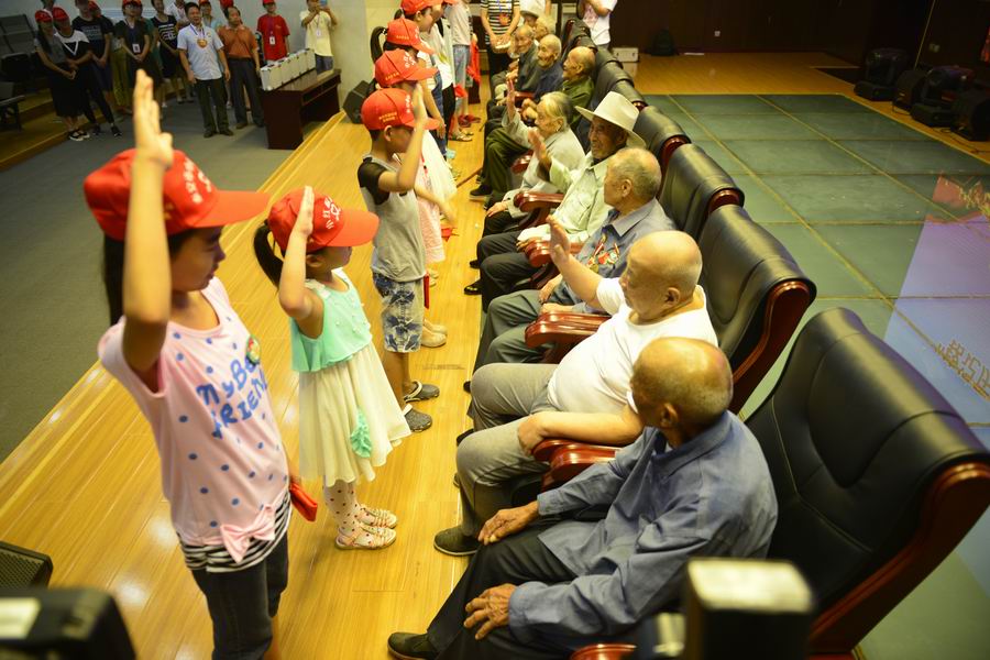 小紅帽志愿者給抗戰(zhàn)老兵敬禮