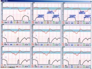 可以同屏顯示長(zhǎng)達(dá)一小時(shí)的監(jiān)護(hù)信息,對(duì)監(jiān)護(hù)信息縱覽無疑,對(duì)整個(gè)監(jiān)護(hù)信息的觀察分析診斷極為方便。