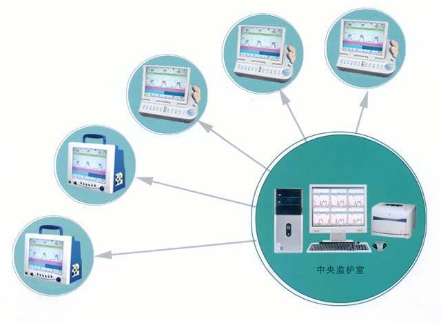 產(chǎn)科多床位電腦母嬰中央監(jiān)護(hù)以中央監(jiān)護(hù)工作站為核心,將分布在產(chǎn)房、待產(chǎn)室、監(jiān)護(hù)室、門診、病房的胎兒監(jiān)護(hù)儀,通過獨(dú)特的網(wǎng)絡(luò)技術(shù)進(jìn)行聯(lián)網(wǎng),實(shí)現(xiàn)多床位信息集中管理、資源共享和全產(chǎn)程監(jiān)護(hù),真正體現(xiàn)胎兒監(jiān)護(hù)的臨床價(jià)值和意義,通過聯(lián)網(wǎng)擴(kuò)展了單機(jī)胎兒監(jiān)護(hù)儀的功能,大大提高了產(chǎn)科的工作效率和工作質(zhì)量。